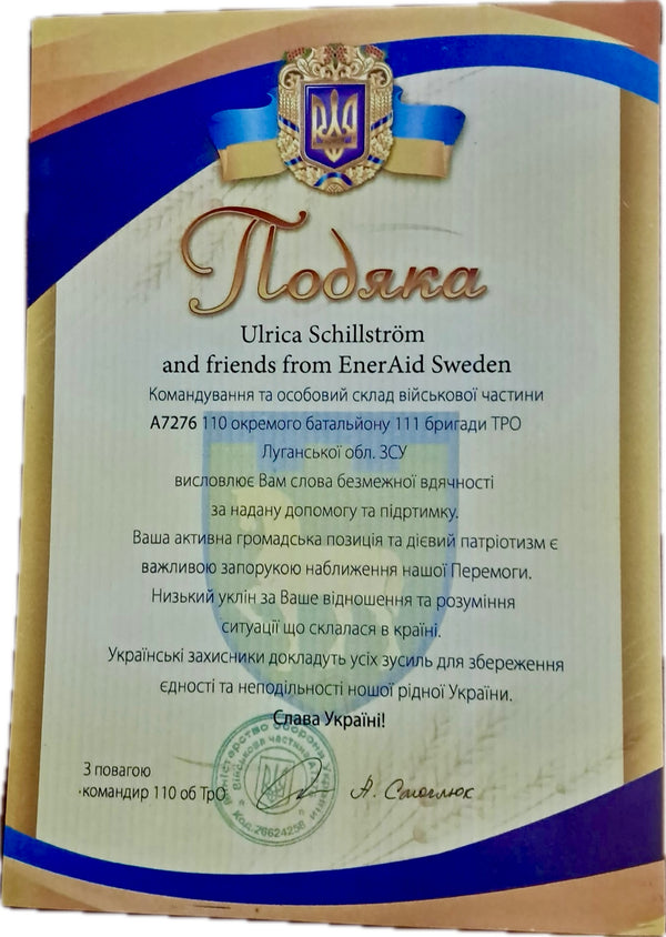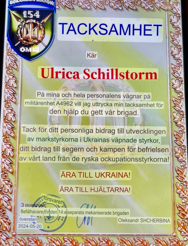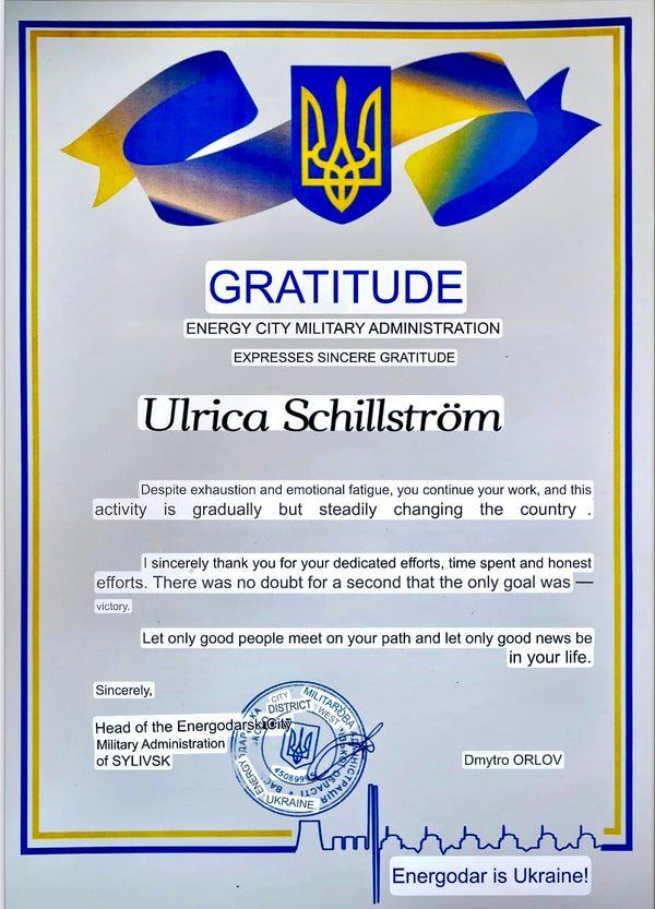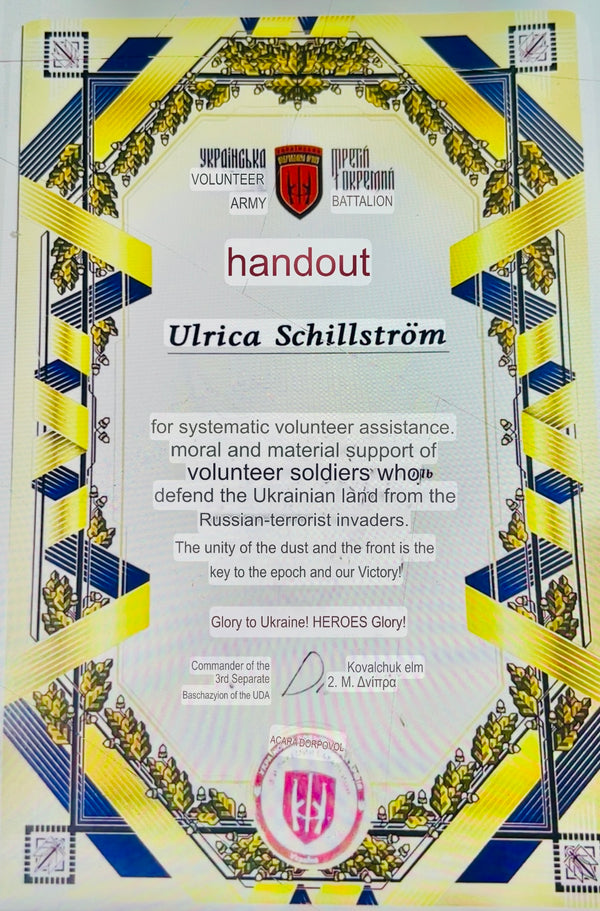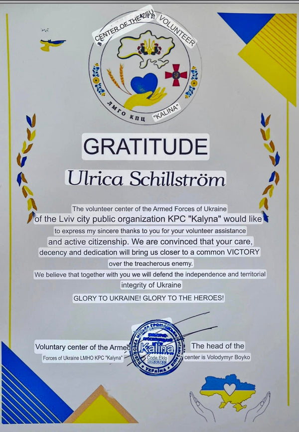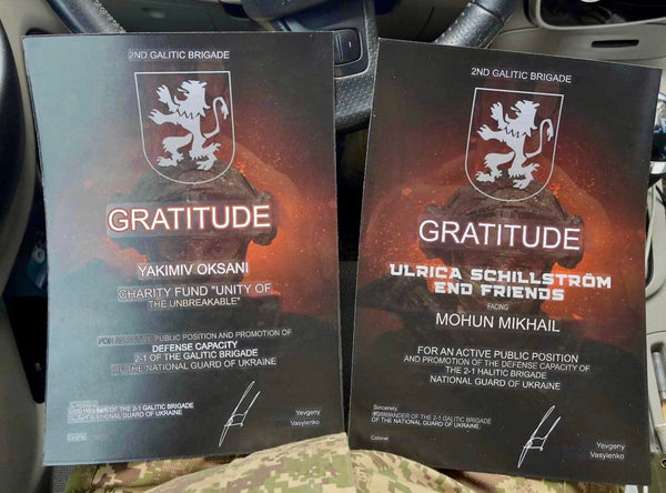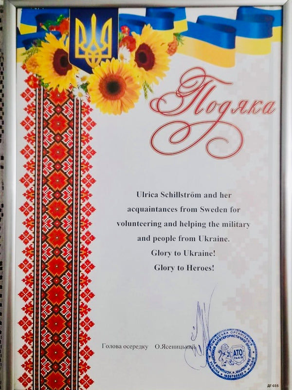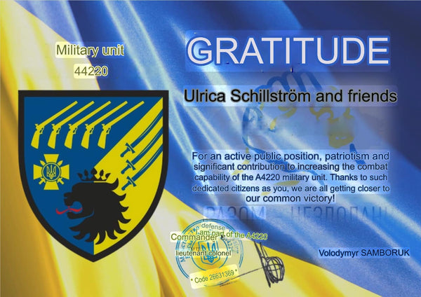 Allt arbete sker ideellt och vi får löpande erkännanden från ukrainska militären.
